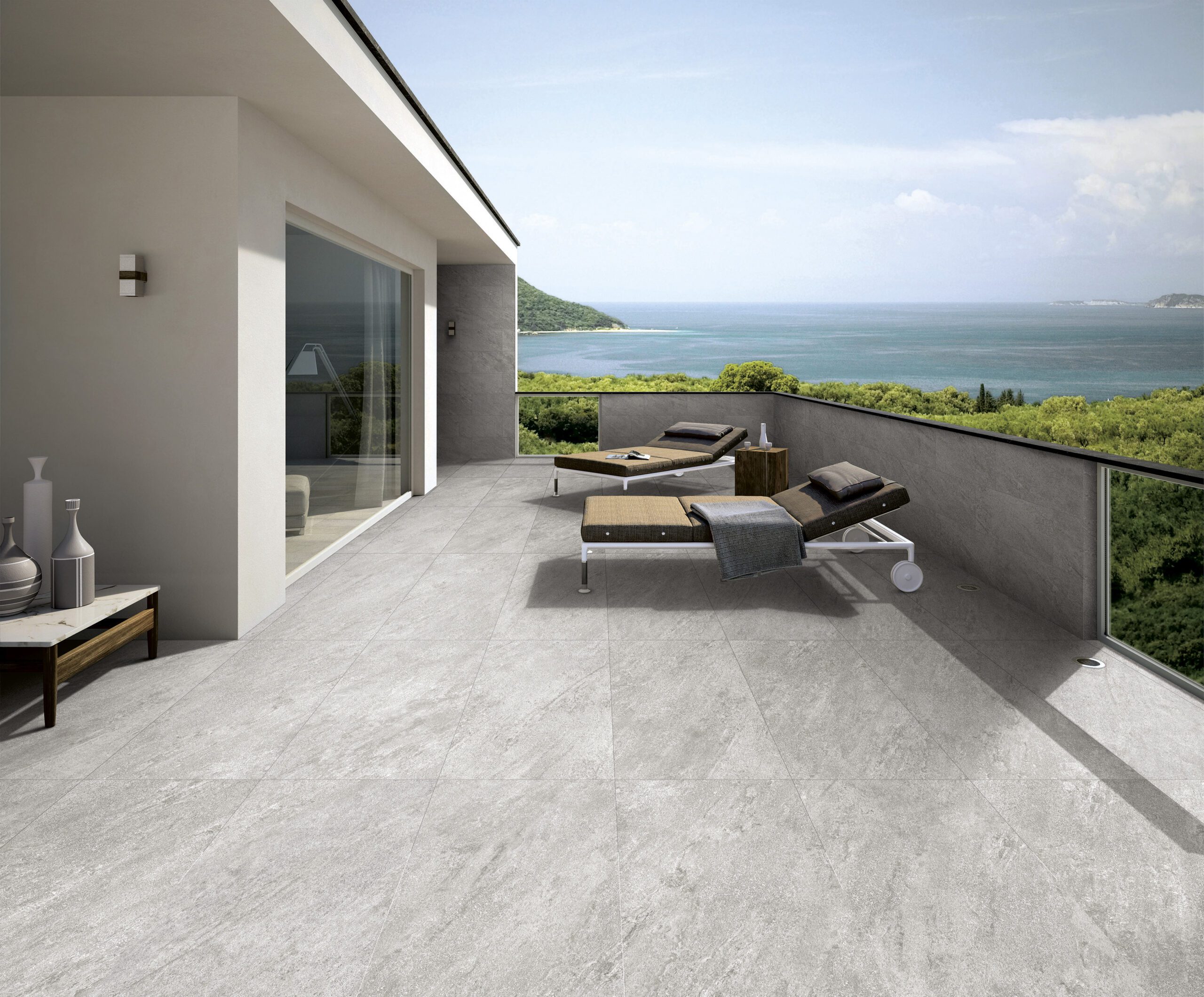 Feinsteinzeug in Steinoptik für den Außenbereich mit dem Charme natürlicher Quarzite mit hoher Rutschfestigkeit.